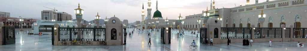 Масджид ан-Набави (Мечеть Пророка) в Медине, Саудовская Аравия. Под Зелёным куполом (по центру), построена могила Мухаммеда