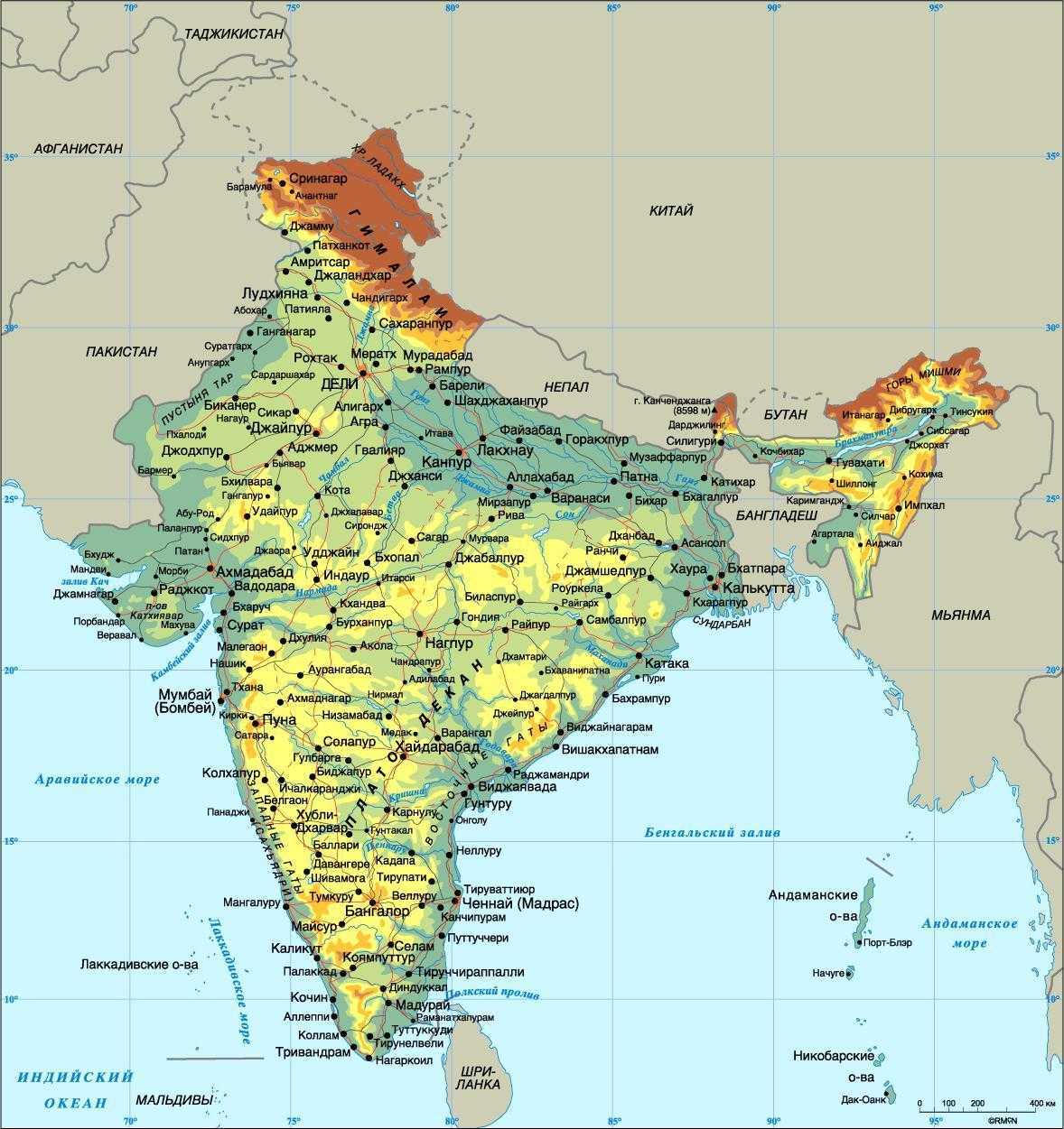 - Индия граничит с 7 странами: Афганистаном, Пакистаном, Китаем, Непалом, Бутаном, Мьянмой и Бангладеш.