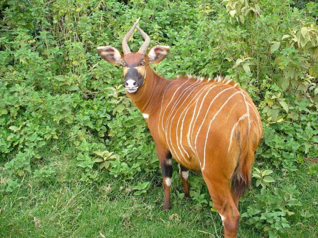 Антилопа Бонго относится к редчайшим видам антилоп, которые внесены в Красную Книгу. Данный вид относится к подсемейству бычьих. Антилопа Бонго представляет собой крупное млекопитающее высотой около 1-1,3 м., и весом порядка 200 кг.
