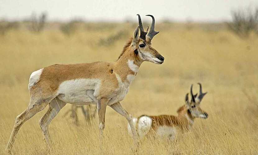 Вилорогая антилопа — наиболее древний представитель американских копытных. Это средних размеров животные с длинными крючковатыми рогами.
