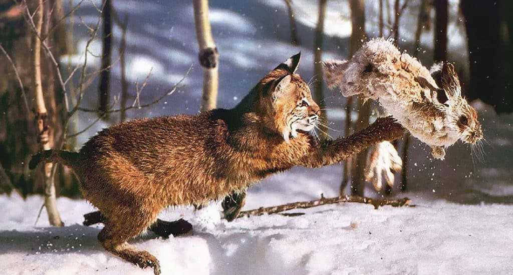 Рысь никогда не охотится с дерева. Выбрав момент, она бесшумно опускается на землю, терпеливо поджидает свою жертву в засаде или подкрадывается к ней.
