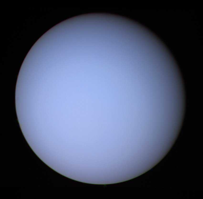 Итак, в атмосфере Урана есть молекулярный водород и гелий с небольшим процентом метана, который отвечает за его синий цвет, поскольку это соединение поглощает волны красного цвета.
