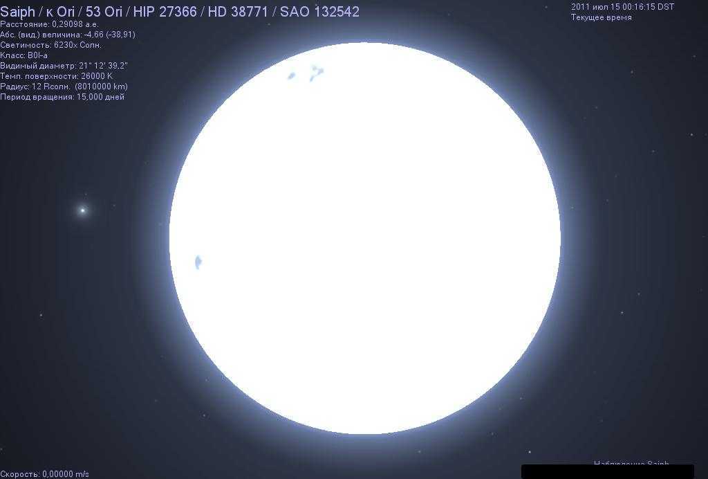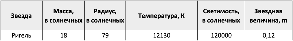 Это ближайшая к Земле звезда, отличающаяся столь высокой светимостью. Ригель удален от поверхности голубой планеты на 860 световых лет, а его яркость превышает солнечную в 130 тысяч раз. Околоэкваториальная звезда относится к группе бело-голубых сверхгигантов.