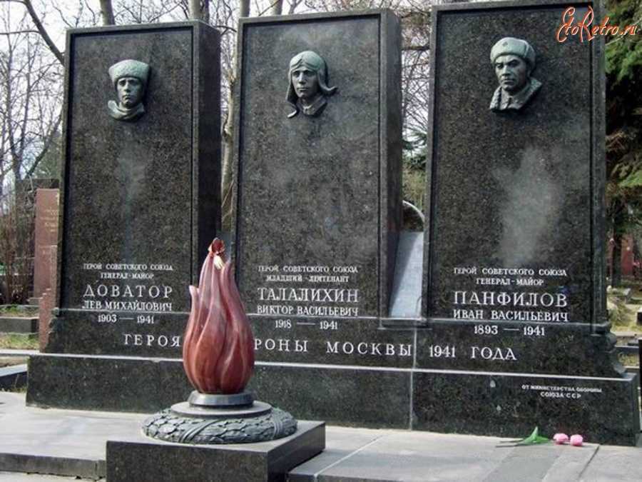 Талалихин похоронен на Новодевичьем кладбище в Москве. В его честь названы улицы в ряде городов нашей Родины (Москве, Волгограде, Борисоглебске, Челябинске, Нижнем Новгороде). Один из кораблей Морского Флота России носит его имя. В городе Подольске, недалеко от места гибели лётчика, установлен его памятник. источник