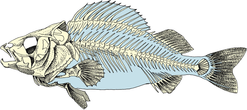 Скелет хищника состоит из позвоночного столба и черепа. Позвоночный столб состоит из большого количества позвонков. Они представлены в виде двояковогнутых дисков. Утолщенная часть позвонка — тело.