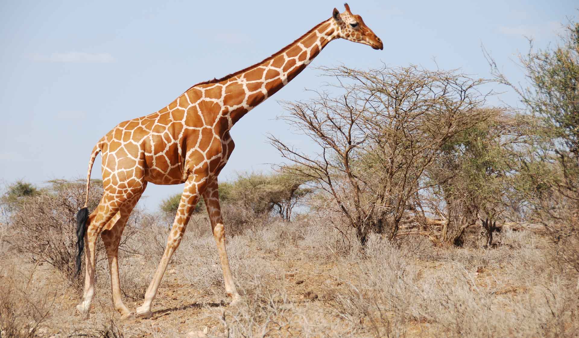 Кожа жирафа очень толстая, поэтому она обеспечивает надлежащую защиту и изоляцию. Кроме того, длинные веки жирафа защищают его от муравьев и колючек на ветках деревьев.