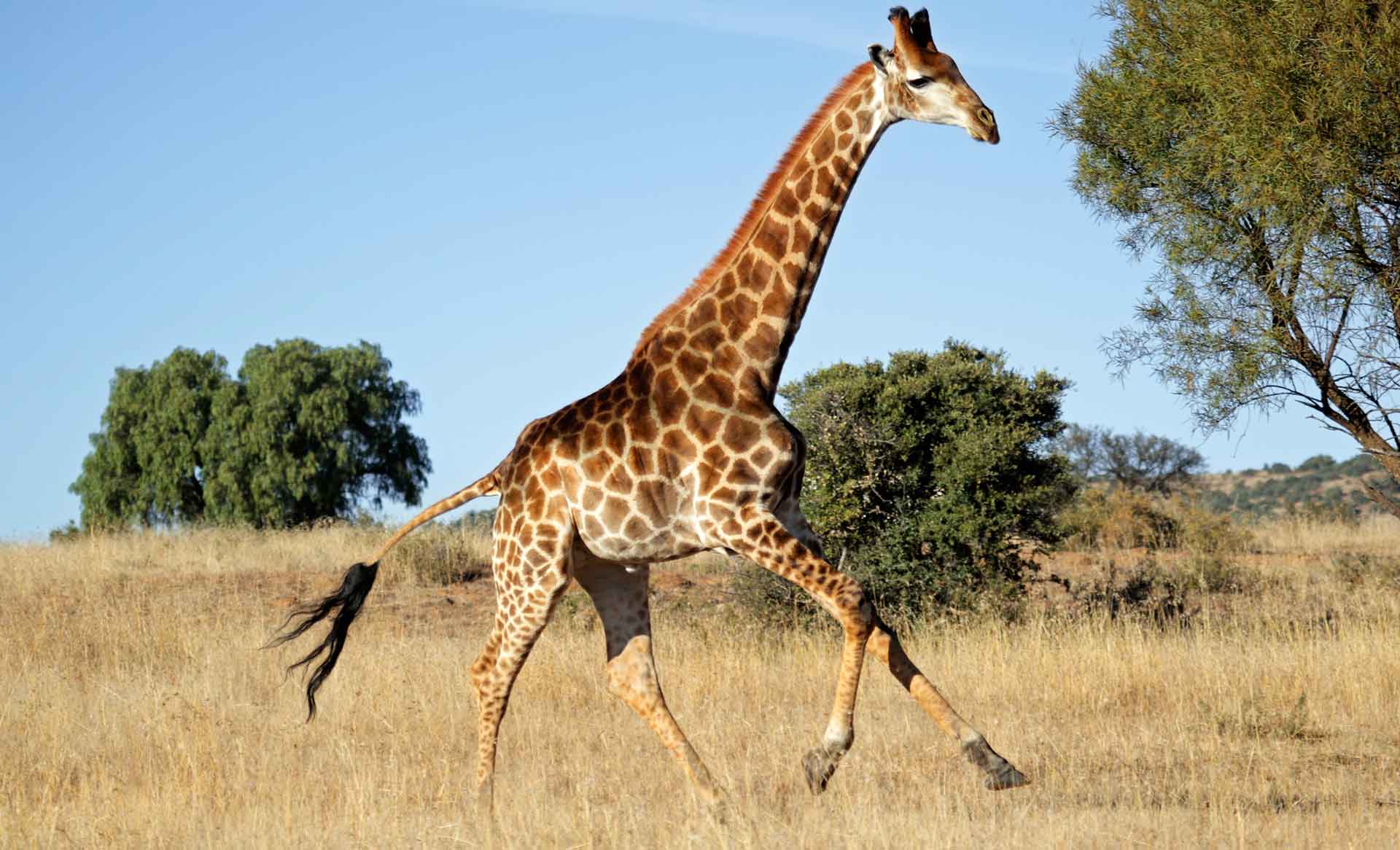 Ходят жирафы довольно необычно – они переставляют ноги с одной стороны туловища, а затем переставляют их на другую. Но бегают они точно так же, как и другие млекопитающие, закидывая задние ноги синхронно с передними. При беге жираф развивает скорость до 55 км/ч, но только на коротких дистанциях.