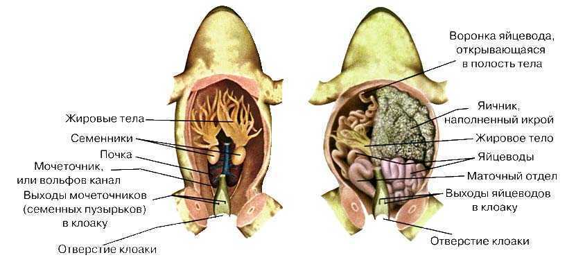 У взрослых земноводных имеется парная туловищная почка, которая состоит из клубочков и канальцев. В клубочках происходит фильтрация мочи из крови.