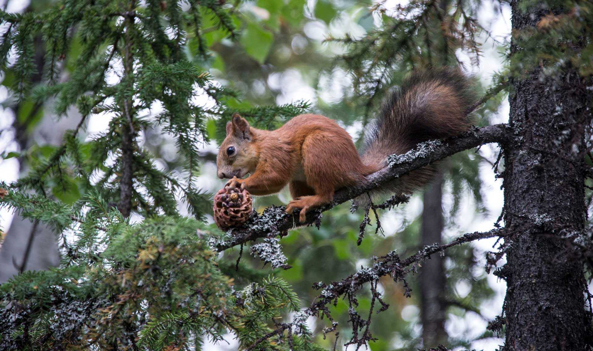 Белка обыкновенная – это типичный лесной житель, который обитает в смешанных хвойно-широколиственных насаждениях, где достаточно пропитания в виде семян различных пород деревьев.