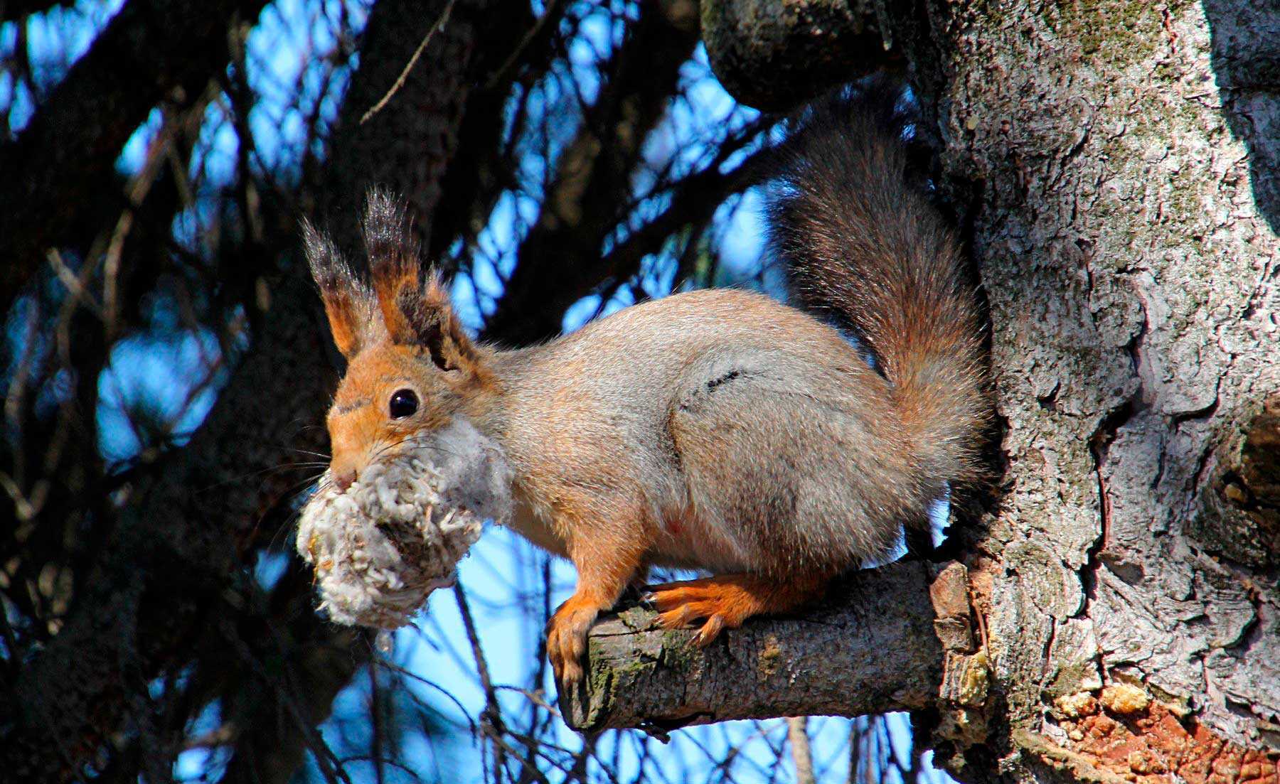 Белка очень чувствует изменения погоды и если в солнечную и не морозную погоду вы не встречаете белок, в привычном месте, то ждите морозов. А если белки начинают резвиться и прыгать, то скоро наступят тёплые дни.