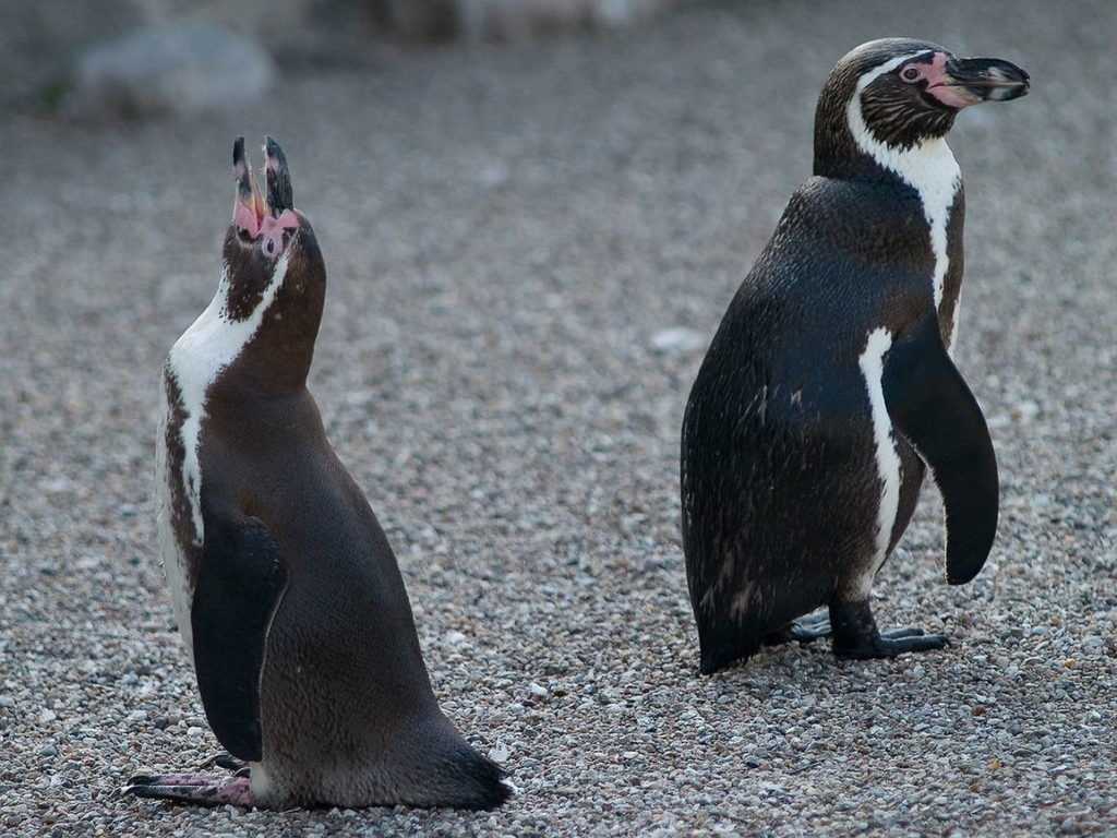 Из всей семьи больше других любит тепло. Его обитание уникально – в нескольких десятках километров от Экватора на Галапагосских островах. Вода там прогревается от 18 до 28 градусов тепла. Всего насчитано около 2000 взрослых особей. В отличие от предыдущего у нет черной «подковы» на груди. Да и белая дужка около глаз не такая широкая и заметная, как у тех.