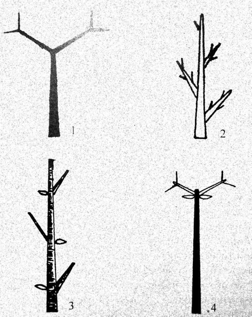 - Акротонное. Наиболее мощные ветви располагаются ближе к верху основного побега.