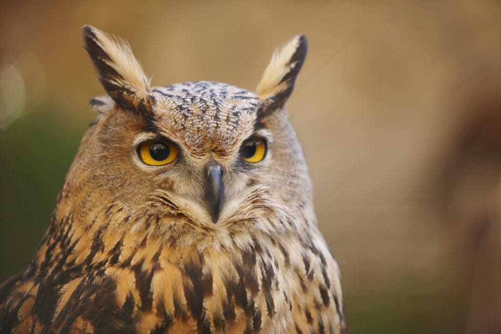 Филин. В большом семействе совообразных это самый крупный представитель. На большой голове в зонах слуховых отверстий находятся жесткие перья, похожие на ушные раковины. Цвет перьев палевого, охристого оттенка.