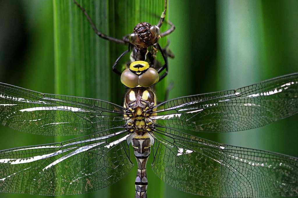 При этом наяда постоянно линяет и растёт, сбрасывая тесную старую кожу. А количество линек может доходить до полутора десятков. В завершающей стадии стрекоза превращается во взрослое насекомое. Её крылья расправляются, и она продолжает свою жизнь в воздушной стихии.