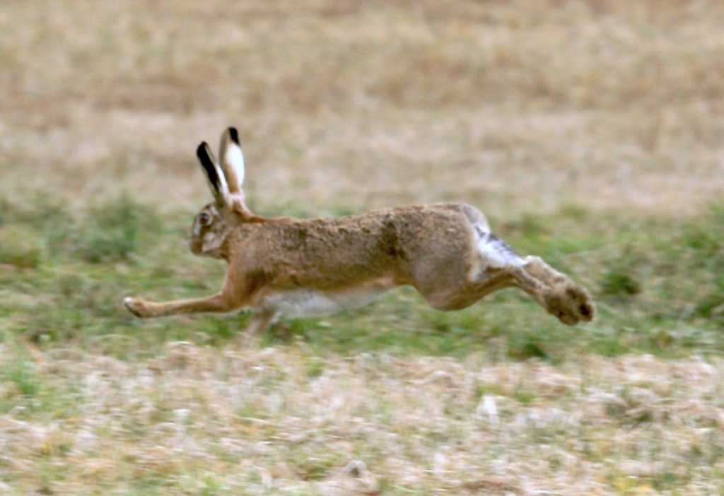 Русак (Lepus europaeus) бежит в чистом поле. Фото: commons.wikimedia.org / Böhringer Friedrich.
