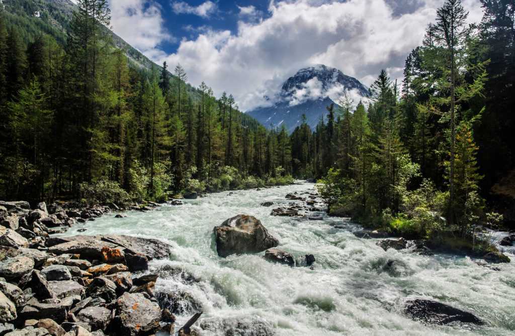 Катунь – главная алтайская река длиной 688 километров. Она берет начало на Катунском хребте. Реку питает около 800 ледников, включая ледник Геблера. Катунь насчитывает более 250 притоков! Она пересекает территорию Алтайского края и Республики Алтай. Реку. На реке насчитывается 15 порогов и каскадов, поэтому ее давно облюбовали любители сплавов. Наиболее известными порогами считаются Тельдекпень, Доллар, Манжерокский, Шабаш. А Кадринская труба и Щёки – это целые каскады порогов.