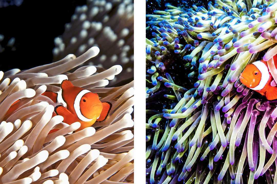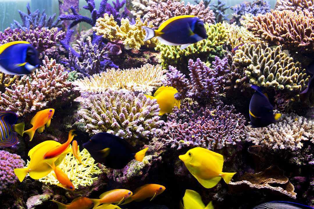 В разноцветных кораллах обитают такие же цветные рыбки.