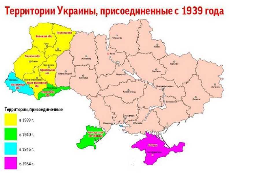 Большая часть нынешней украинской территории была получена республикой в годы советской власти. Так, были отданы ей Крым, Закарпатье, Перемышль, Волынь и пр. Если все это сейчас отнять, то от Украины останется где-то половина, а если вернуть ее в предполагаемые границы 1654 г., то в статусе суверенного государства останется Киевская область, да и то не вся.