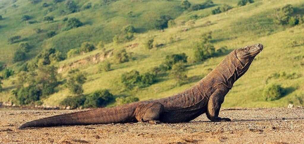 - комодские вараны, самые крупные ящерицы (длина достигает 3 м, вес – 159 кг), догнав добычу, кусают ее и ждут, когда она ослабеет от попавших в кровь токсинов и бактерий, а потом принимаются за трапезу;