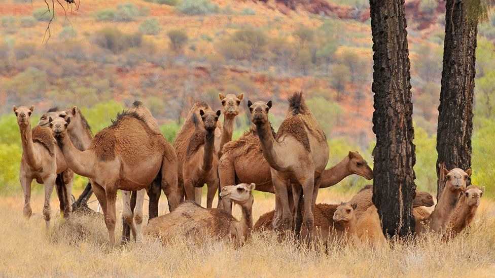 Верблюды не относятся к числу коренных животных Австралии. Как вьючные животные, они были завезены сюда в XIX веке из Афганистана и Индии. Но с популяризацией машин и иного транспорта верблюды были выпущены на волю. В условиях дикой природы их популяция стремительно выросла.