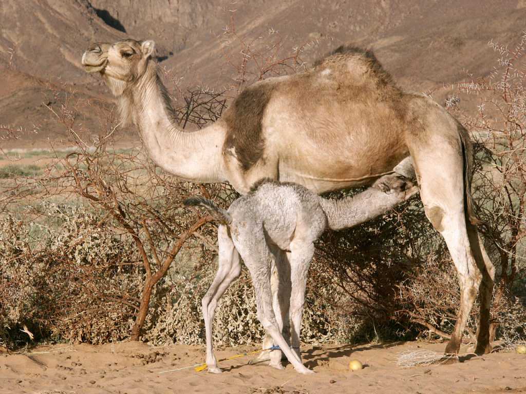Верблюжонок питается. Фото: commons.wikimedia.org.