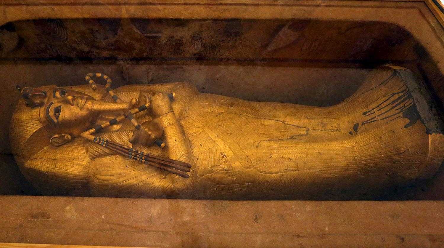 К большому сожалению тех, кто интересуется где сейчас находятся вещи из гробницы Тутанхамона, исследователи Говарда Картера не отнеслись с должным уважением к мумии владыки. И больше взволновали драгоценности, которые были спрятаны под бинтами забальзамированных останков царя. И поэтому мумифицированное тело было сильно повреждено.
