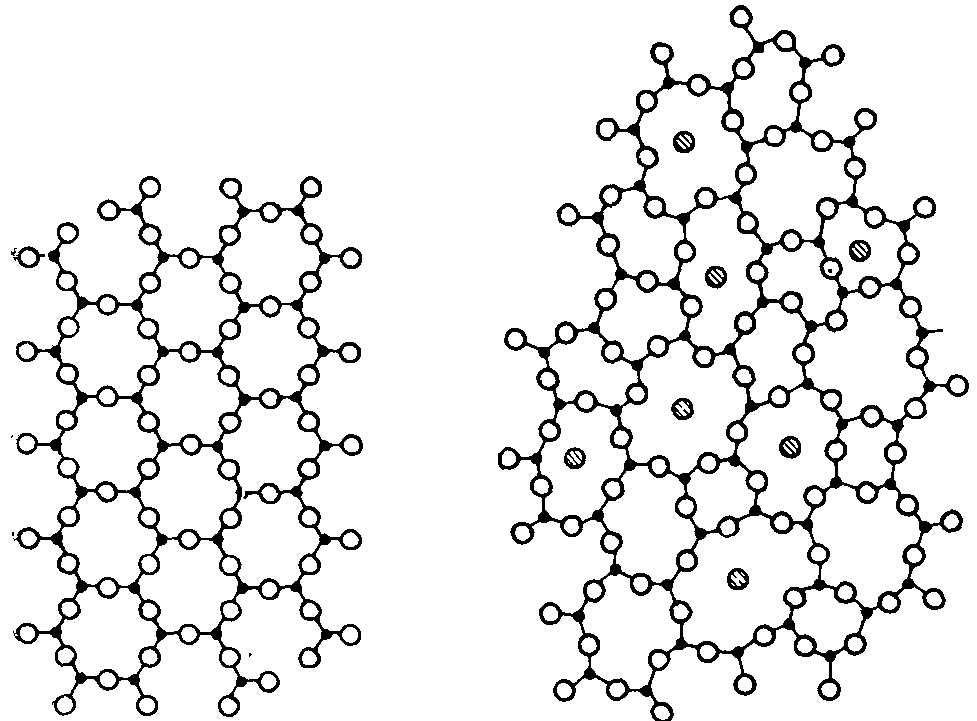 Структура кварца была расшифрована Брэггом и Гиббсом в 1925 году. Его основным строительным блоком является группа SiO4, в которой четыре атома кислорода окружают центральный атом кремния с образованием тетраэдра.