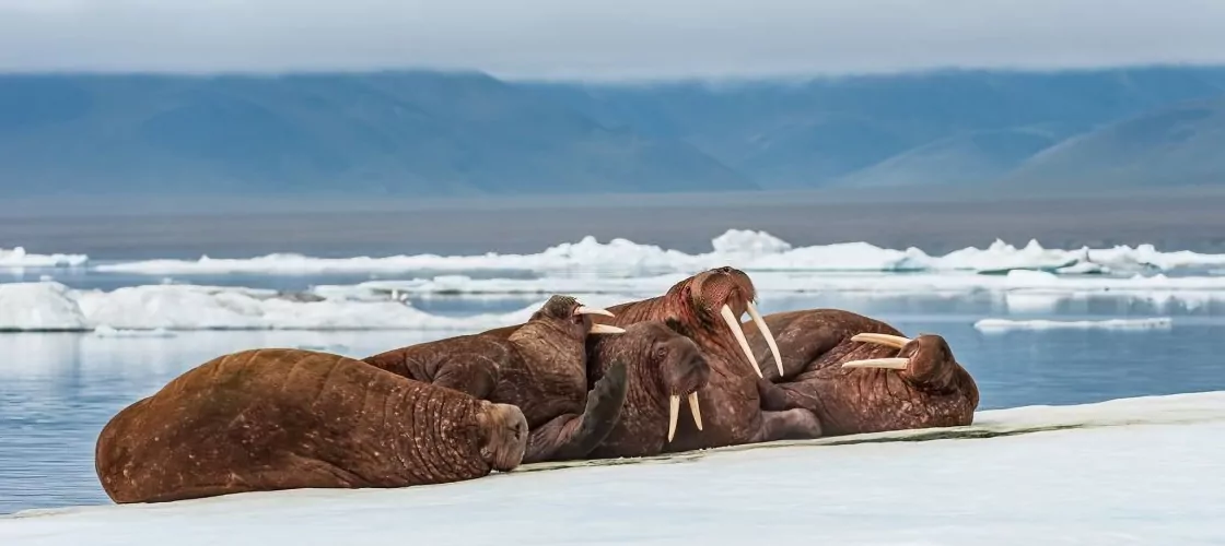 Они держатся близ кромки льдов, выползают отдыхать на льдины. Если льды отходят, моржи подходят ближе к берегу и формируют лежбища на суше. В такие моменты можно насчитать около 80 тысяч животных, без учета плавающих в море. Зимовать они уходят в Берингово море. Благодаря грозным бивням способен противостоять даже белому медведю.