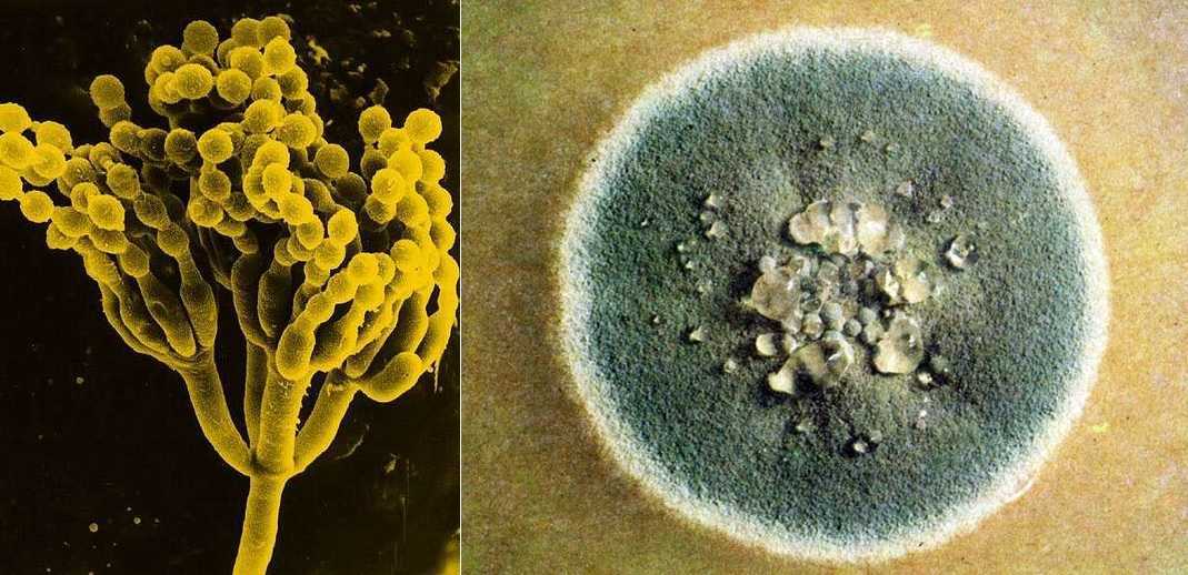 Существует более 185 видов Aspergillus. Эта плесень на стенах имеет наибольшее распространение, она же считается наиболее распространенной причиной грибковых заболеваний в России. Плесень может быть найдена в домах и офисах, она вырабатывает микотоксин, что может привести к ряду осложнений, включая респираторные заболевания, аллергию и так далее. Aspergillus может становиться причиной смерти в некоторых случаях. Aspergillus fumigates, Aspergillus flavus и Aspergillus niger являются наиболее распространенными видами.