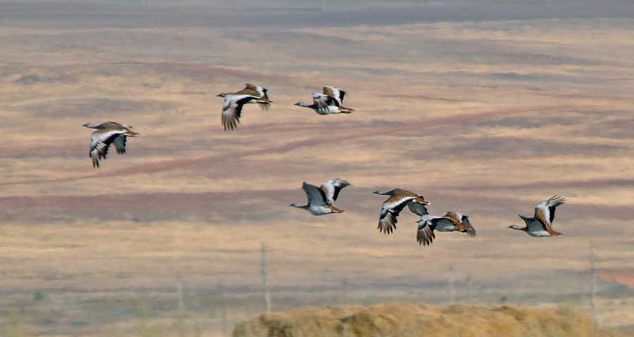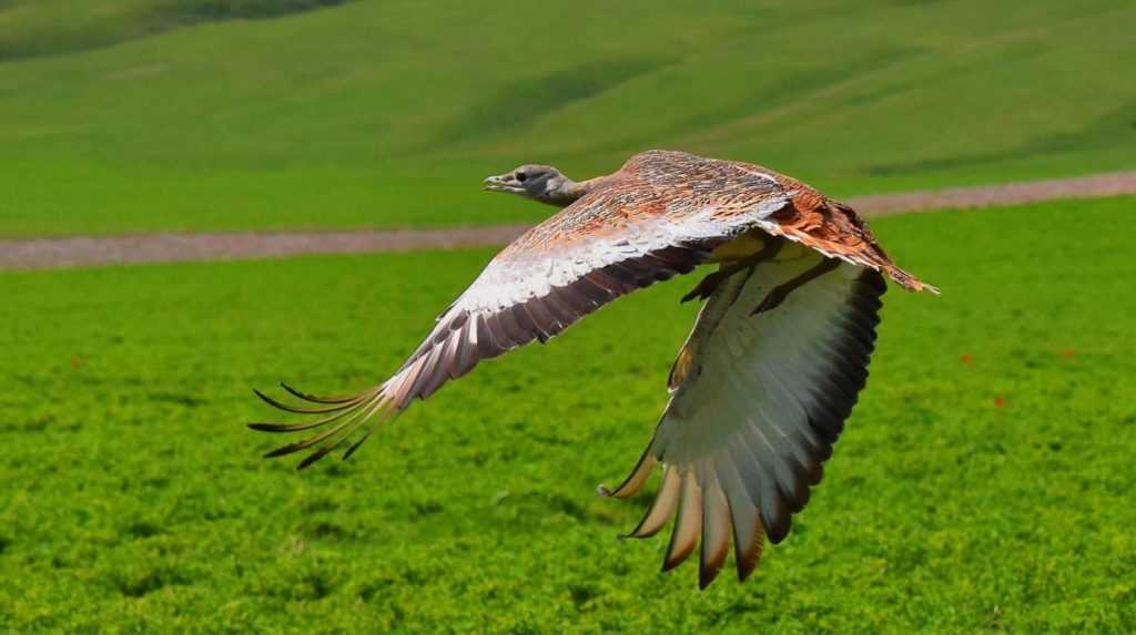 Дрофы не любят летать, скрываться от врагов им предпочтительнее бегством