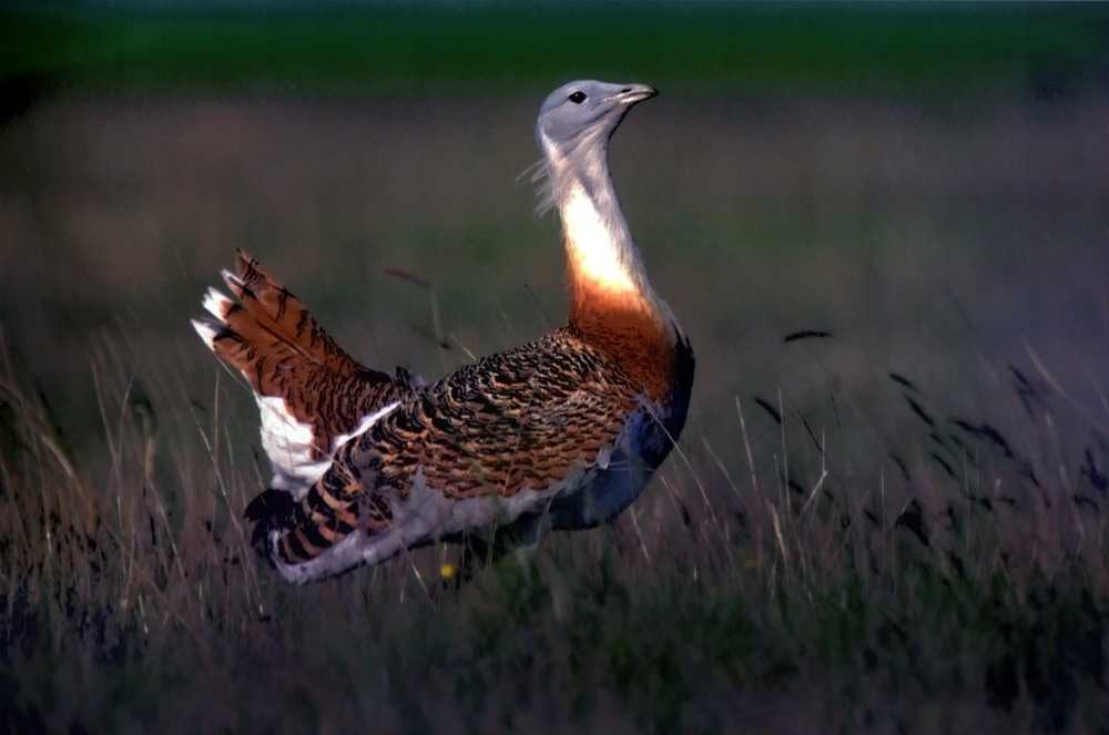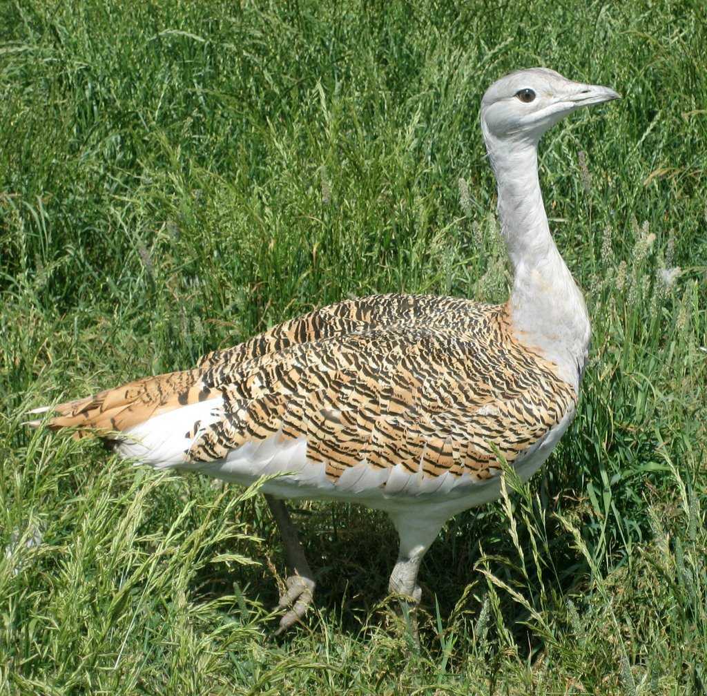 дрофа обыкновенная – птица очень крупная, до 16 кг весом. Обитает в степных районах. Толстая шея, крепкие ноги, рыже-белое оперение с темными пестринами в окрасе.
