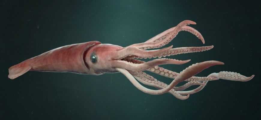 В природе существуют гигантские кальмары. Их длина достигает до 8 метров. Щупальца вытянуты. Они признаны самыми большими беспозвоночными животными в мире. Проживают такие особи на глубине 1000 метров.