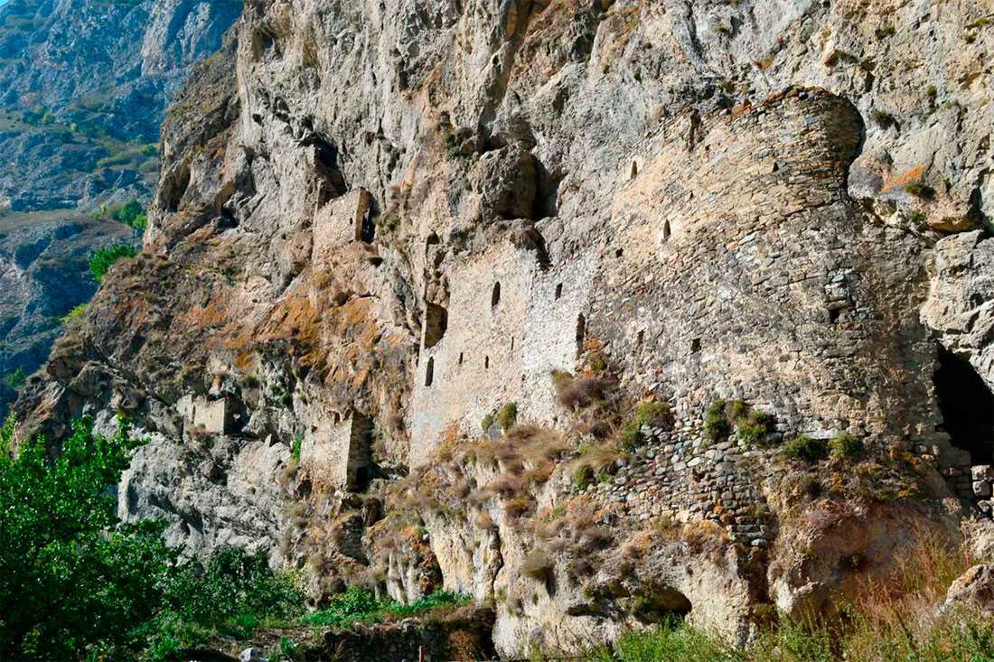 Дзивгисская крепость – фортификационное сооружение весьма необычное. Средневековые строители поступили довольно мудро, использовав в качестве основы естественные скальные пещеры и просто пристроив к ним внешние стены. При этом стены возводились из имеющихся тут же в изобилии обломков скал, что существенно упрощало строительный процесс.