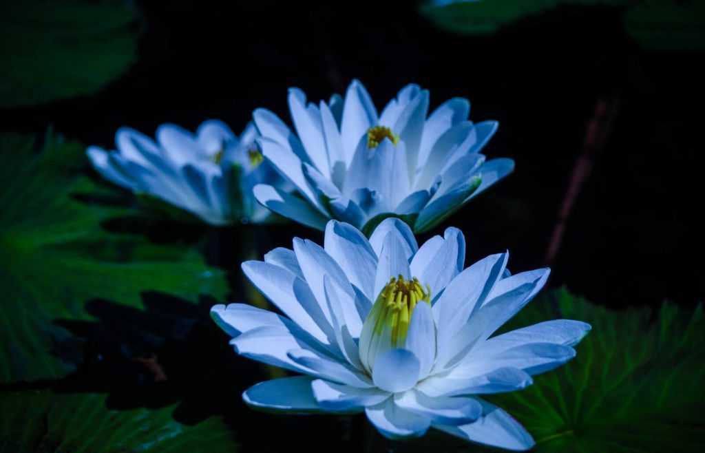 Цветки распускаются по очереди. Сначала над водной гладью можно увидеть бутон, сильно похожий на грушу. С наступлением вечера являет себя миру белоснежный цветок, в венчике которого может находиться до 60 лепестков. Ближе к середине белый цвет переходит в нежно-розовый. В диаметре такой красавец достигает 35 см, причем в свой самый первый день у цветка женский род, и только потом – мужской.