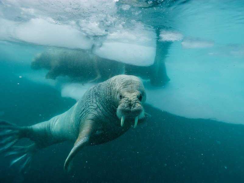 Несмотря на внушительные габариты, моржи предпочитают не ввязываться в драку и отступают. На суше животные довольно неуклюжи, но в воде они могут развивать скорость до 40 км/ч.