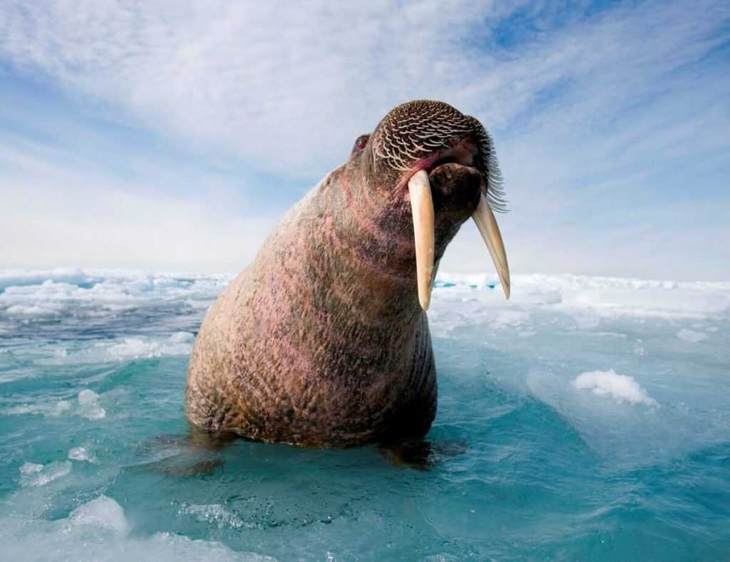 Интересные факты о моржах 3 Греческое название моржа «Odobenus rosmarus» буквально означает «ходящий на зубах», такое название моржи получили благодаря способности цепляться своими бивнями за льдины и карабкаться по льду.