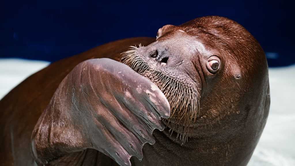 - Кожа моржа обладает интересной особенностью: при длительном пребывании на солнце из-за расширения сосудов она приобретает розовый оттенок, а во время погружения в холодную воду светлеет, становясь практически белой.