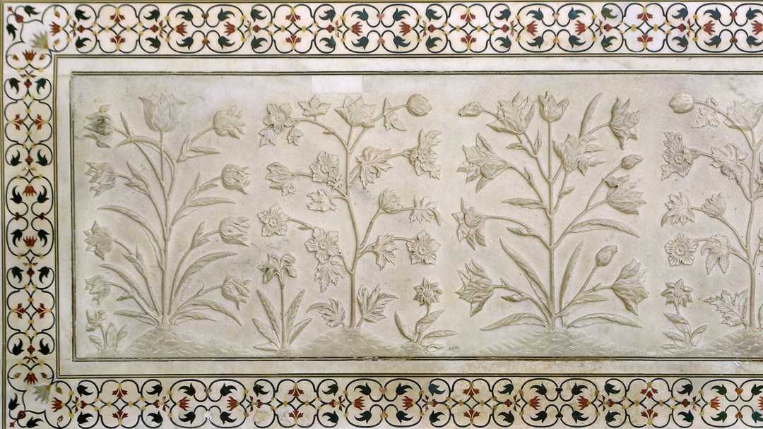 Тадж-Махал. Декорация стены: резьба по мрамору, инкрустация. Август 2012 г. Автор фото: : Yann Forget. Лицензия: Creative Commons