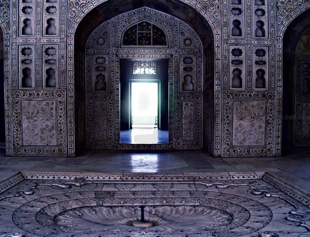 Чувство легкость здания издалека подкрепляет и его украшение при более тщательном изучении. Так стены разрисованы тонким узором, мраморные блоки инкрустированы самоцветами, переливающимися на свету. Кажется, что эту постройку воздвигли совсем недавно. Не удивительно, что по очередному преданию, Шах Джахан приказал отрубить руки архитектору, дабы тот не смог повторить подобное.