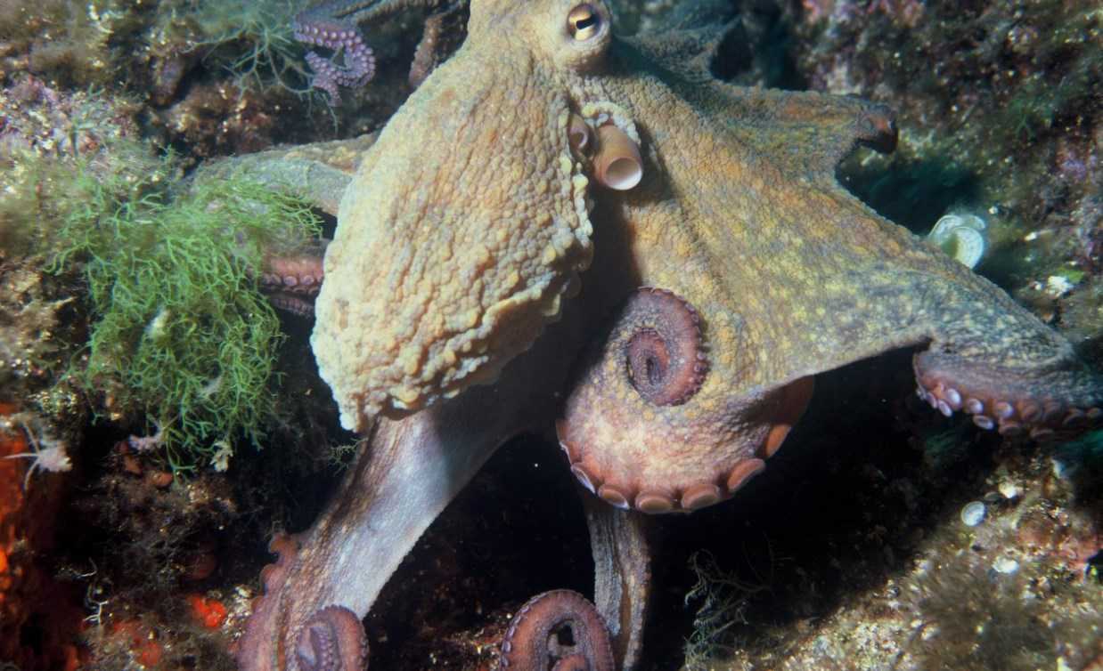 Осьминоги отличаются развитым интеллектом — они могут различать геометрические фигуры, могут привыкнуть к человеку. Они делают уборку местах своего проживания — струей воды смывают грязь, из мусора и отходов делают мусорные кучки вне своего жилища.