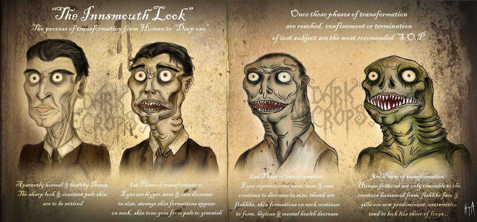 Повесть рассказывает о вымышленном городе Иннсмут, который сам по себе воспринимается как один из наиболее будоражащих образов Лавкрафта. Здесь явно творится некоторое дерьмо и автор сразу дает нам понять это. Местные жители обладают определенным уродством, поклоняются неким «глубоководным», хранят омерзительные тайны и вообще воплощают все то, что так пугает вас в жителях поселков городского типа.